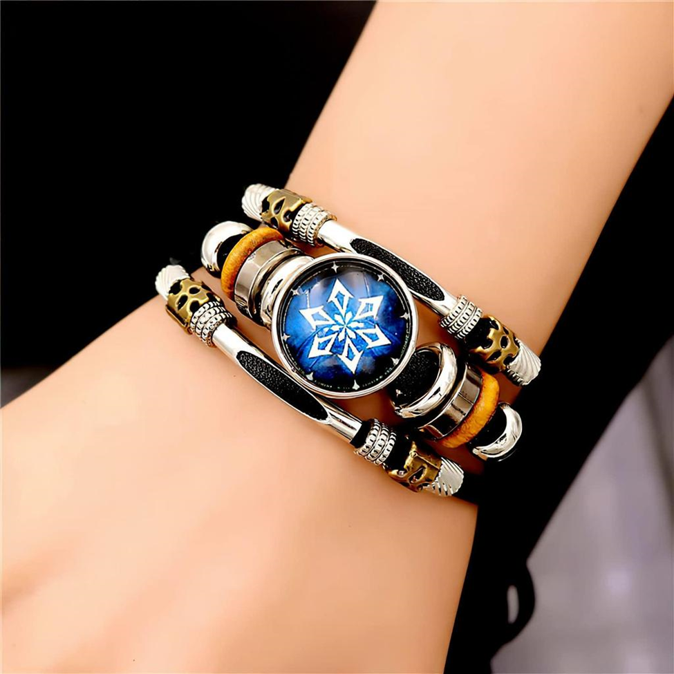Stylish Multi-Strand Bracelet Features a blue snowflake charm with layered leather and metal accents—bold, elegant, and full of personality.