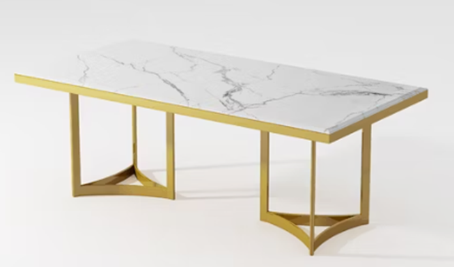 Transform your dining area with the Modern Marble Stone White Rectangular Dining Table, a stunning fusion of luxury and contemporary design. Featuring a sleek white marble stone top with natural veining, this table offers both sophistication and timeless beauty. The rectangular shape provides ample space for family dinners or stylish gatherings, while the sturdy base, crafted from wood, metal, or MDF, ensures durability and modern appeal. Perfect for modern, minimalist, or classic interiors, this dining table becomes the centerpiece of any dining room, combining elegance with practicality.