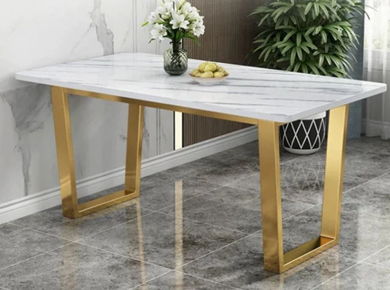 Featuring the modern style, this dining table is the perfect addition to improve your lifestyle. Rectangle-shaped tabletop is designed to showcase the beauty of faux marble, which will bring you an earthy yet graceful touch. While the trestle base reinforces its aesthetics with clean lines and gleaming gold hue. Durably constructed of high-quality materials, it’s sure to be a chic and functional addition to your dining room for years to come. Add visual interest and dimension to your dining space with this wonderful piece!