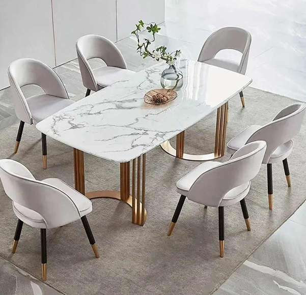 Rectangular White Marble Stone Dining Table Top, 6-Seater